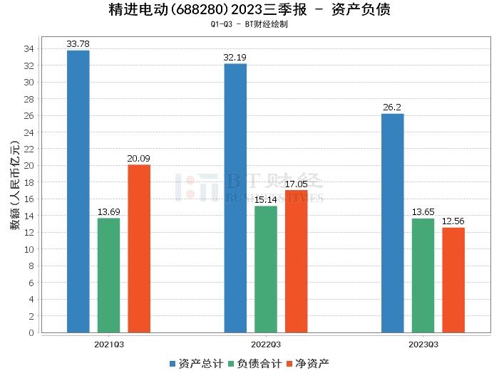 从资产负债方面来看,2023年三季度,精进电动的总资产为26.2亿元,相比上年度末的29.82亿元有所减少。负债合计为13.65亿元,略低于上年度末的13.96亿元。净资产为12.56亿元,较上年度末的15.86亿元有所下降。资产负债率为52.08%,较上年度末的46.81%有所上升。