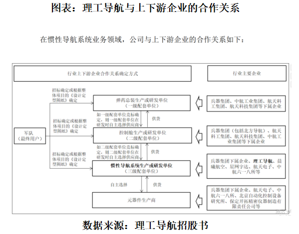 招股书显示,军用惯性导航系统的生产或研发单位为三级配套单位。根据产业链配套关系,理工导航作为三级配套单位,向军工客户协商确定对应的一级和二级配套生产单位供货。