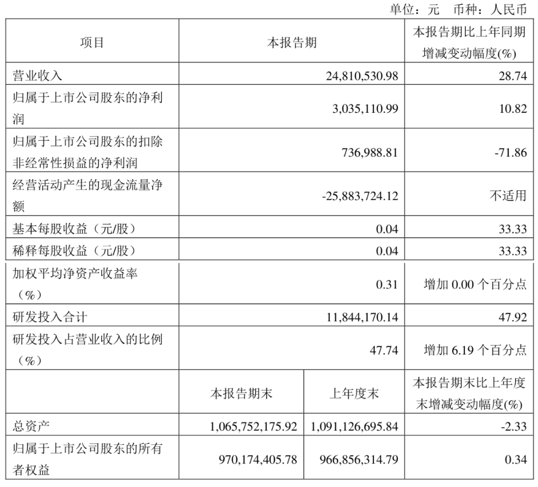 2024年第一季度,公司经营活动现金流净额为-2588.37万元,同比增加1819.49万元;筹资活动现金流净额-15.54万元,同比减少8303.05元;投资活动现金流净额-7132.18万元,上年同期为-9691.44万元。