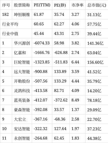 从行业市盈率排名来看,公司所处的专用设备行业市盈率平均60.65倍,行业中值45.44倍,坤恒顺维排名第182位。