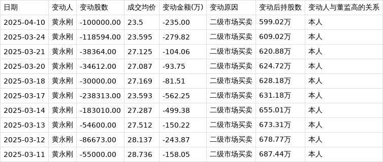 上交所公开信息显示,4月10日,坤恒顺维董事、高级管理人员黄永刚在二级市场买卖公司股票,减持股数10.00万股,成交均价23.50元,变动金额235.00万元,变动后持股数为599.02万股。
