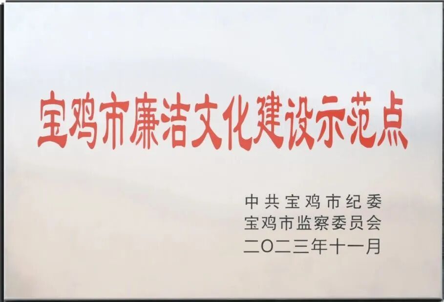 打造“清正筑高铁 廉洁行万里”党风廉政教育基地,被宝鸡市纪委命名“宝鸡市廉洁文化建设示范点”。