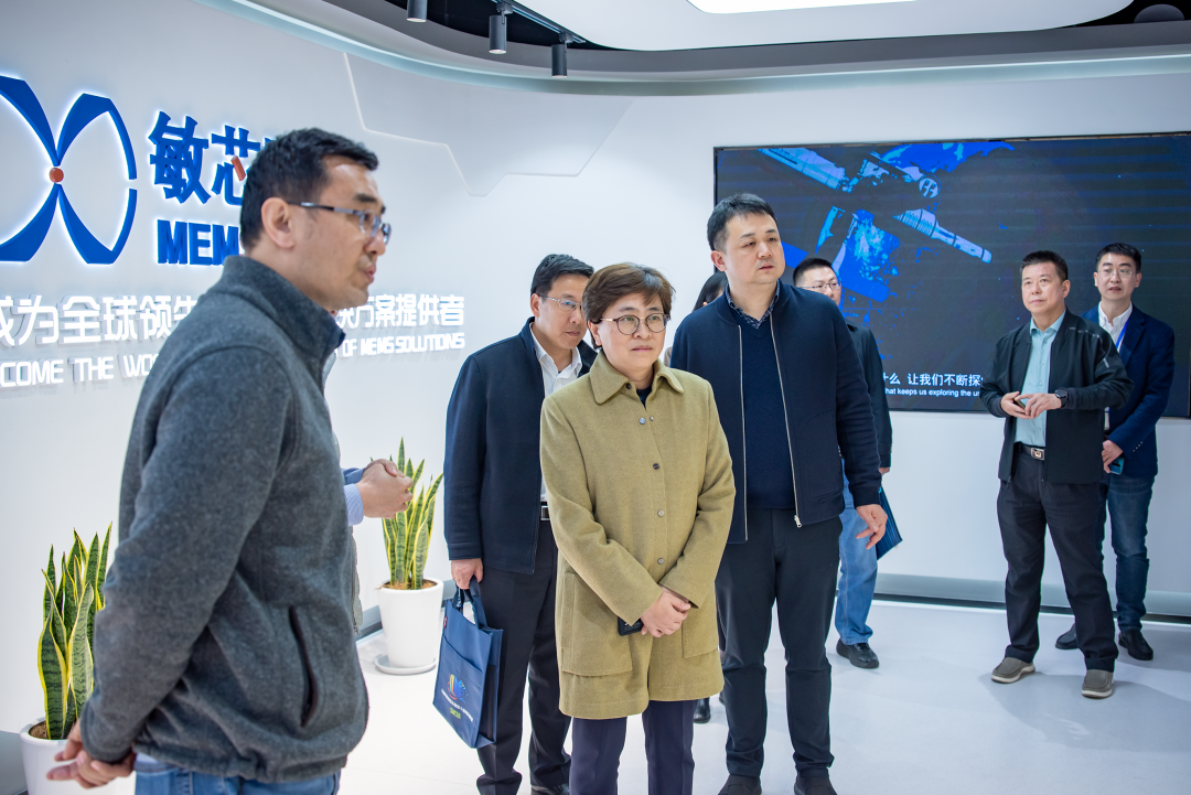 在参观过程中,敏芯股份董事长李刚向支苏平局长一行介绍了企业发展历史、核心技术与高性能传感器产品,作为“小企业撬动大产业”的典型样板,敏芯经历了中国MEMS产业从无到有的历史过程,参与国家02专项、科技部863计划等重点项目科研攻关,帮助国内建立了第一条6寸MEMS晶圆制造线,推动了中国MEMS产业链的构建,大大提高了中国消费类MEMS产业量产水平,一系列发展成果得到了支苏平局长的称赞。