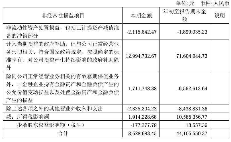 而归母净利润的下滑,主要系报告期内非经常性损益减少所致。据披露,非经常性损益项目合计对2023年前三季度的净利润产生了2.79亿元的影响;而在2024年前三季度的影响值仅为4411万元。