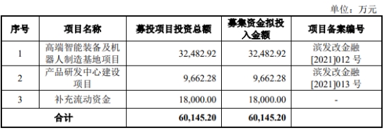 景业智能于2022年4月29日在上交所科创板上市,本次发行股票数量20,600,000股,占发行后总股本的比例为25%,本次发行不涉及股东公开发售,本次发行价格为33.89元/股,保荐机构(主承销商)为中信证券股份有限公司,保荐代表人为毛宗玄、俞瑶蓉。募集资金总额为69,813.40万元,募集资金净额为62,028.75万元;公司2022年4月25日发布的招股书显示,公司拟募集资金60,145.20万元,用于高端智能装备及机器人制造基地项目、产品研发中心建设项目、补充流动资金。
