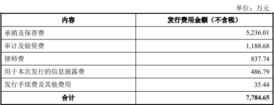 景业智能2022年公开发行新股的发行费用合计7,784.65万元(不包含增值税),其中,承销及保荐费5,236.01万元。