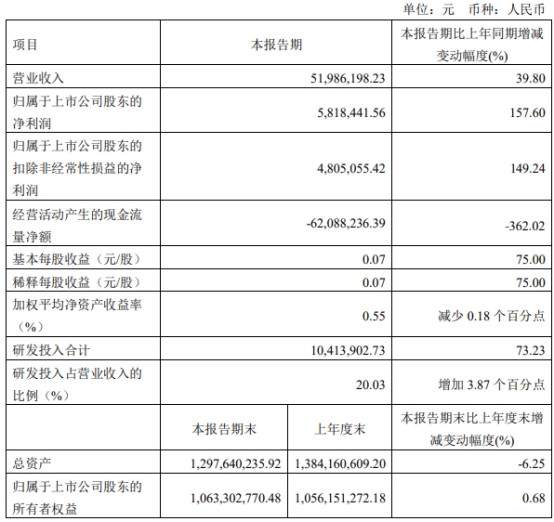景业智能2023年第一季度营业收入为5198.62万元,同比增长39.80%;归属于上市公司股东的净利润为581.84万元,同比增长157.60%;归属于上市公司股东的扣除非经常性损益的净利润为480.51万元,同比增长149.24%;经营活动产生的现金流量净额为-6208.82万元,同比减少362.02%。