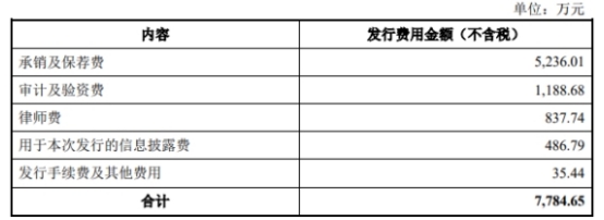 景业智能2022年公开发行新股的发行费用合计7,784.65万元(不包含增值税),其中,承销及保荐费5,236.01万元。
