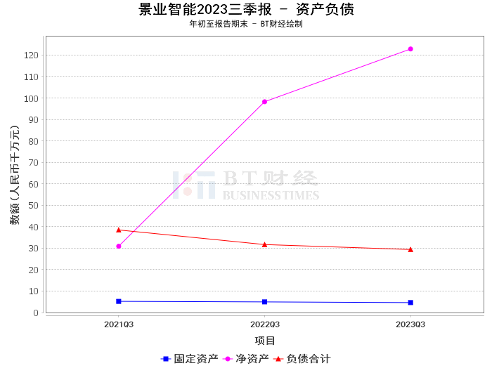 根据2023年三季报,景业智能的资产总计为15.22亿元,相较于上年度末的13.84亿元有所增长。负债合计为2.94亿元,相较于上年度末的3.28亿元有所减少。这表明公司的资产规模在扩大,负债规模在缩小,整体财务状况较为稳健。