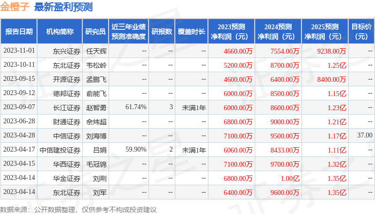 最新盈利预测明细如下: