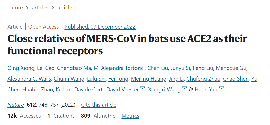 综上所述,作者确定了MERS-CoV 的近亲,如 NeoCoV 和 PDF-2180,与蝙蝠ACE2结合以进入细胞。该研究成果有助于促进针对使用ACE2受体的MERS相关冠状病毒的基础研究,并为相关疫苗与抗病毒药物的研发奠定了基础。需要强调的是,迄今为止,没有证据表明 NeoCoV 或 PDF-2180 可以感染蝙蝠以外的哺乳动物,其致病力与传播能力也有待进一步研究。