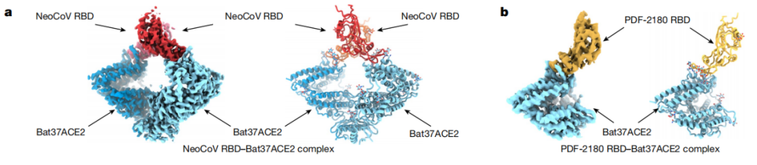 图2 NeoCoV RBD 和 PDF-2180 RBD在Bat37ACE2复合体中的冷冻电镜结构