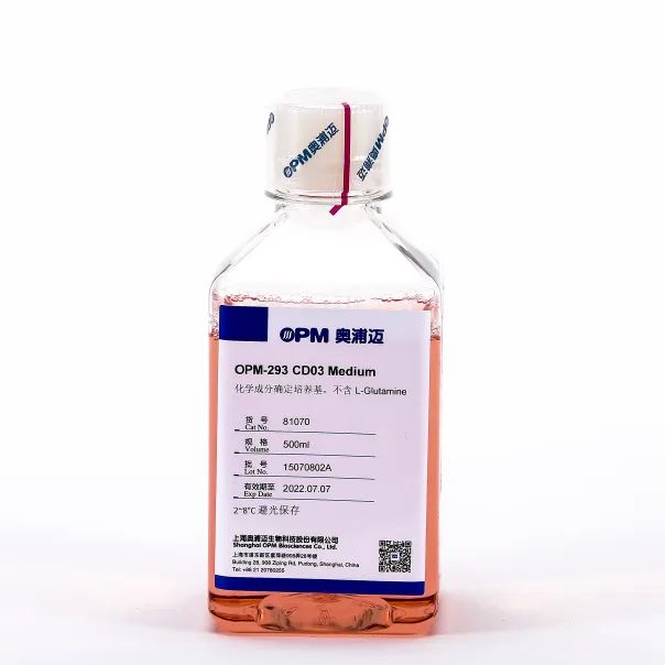 OPM-293 CD03是化学成分确定(Chemically-defined)的培养基,不含水解物、蛋白、生长因子、L-Glutamine及任何动物来源的成分,广泛应用于各种亚型HEK293细胞的高密度培养及高效率瞬时转染。