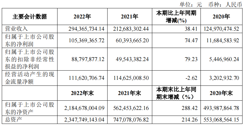 3月29日,奥浦迈(688293)发布2022年度报告,报告期内,公司实现营业收入2.94亿元,同比增长38.4%。实现归属于上市公司股东净利润1.05亿元,同比增长74.5%;基本每股收益为1.54元。