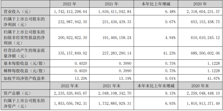 3月28日,理邦仪器(300206)发布2022年度报告,报告期内,公司实现营业收入17.42亿元,同比增长6.48%;实现归属于上市公司股东净利润2.33亿元,同比增长0.67%;基本每股收益0.402元。
