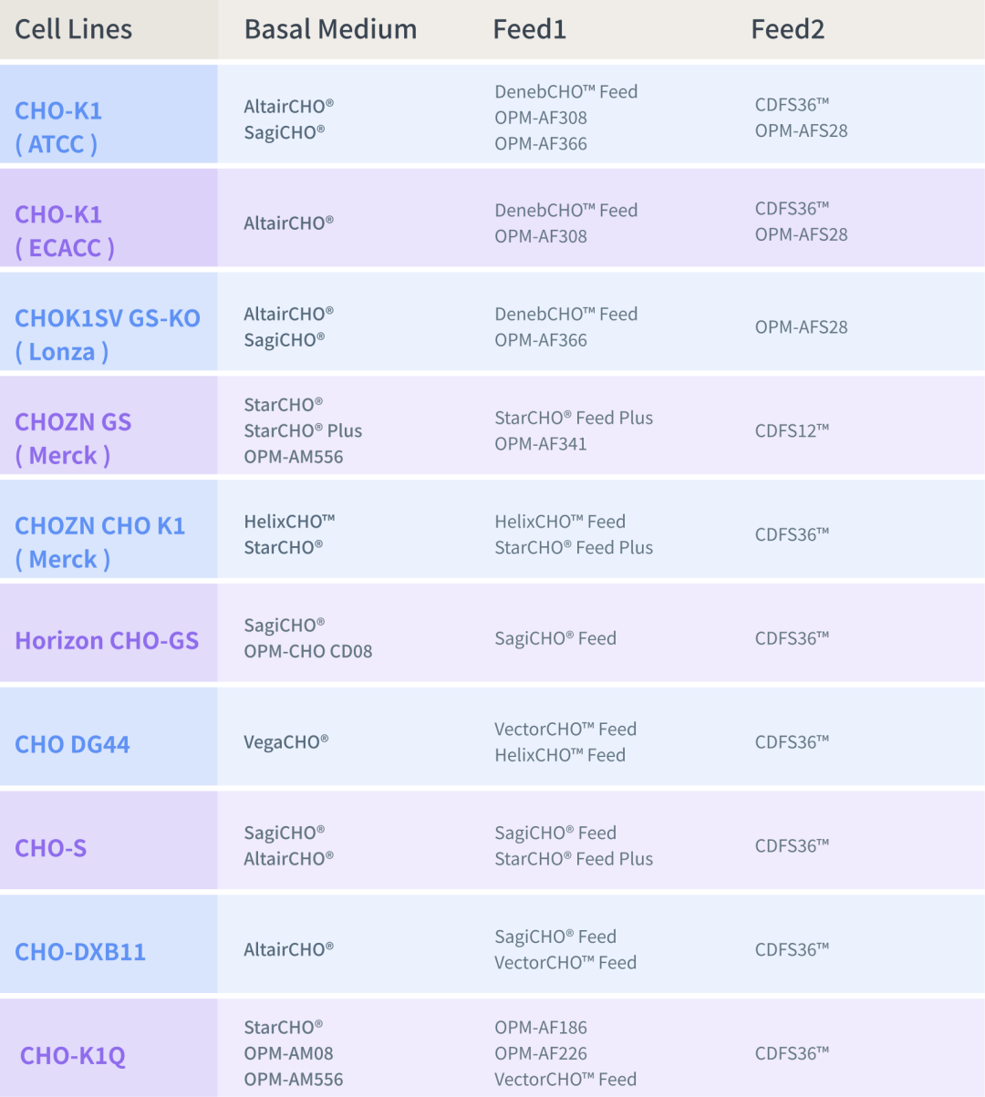 对于CHOZN GS (Merck)细胞,推荐使用 StarCHO? Plus + StarCHO? Feed Plus + CDFS12? 组合;