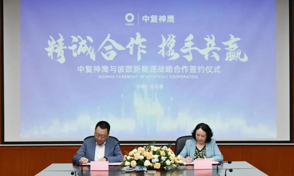 9 月 19 日,中复神鹰与彼欧新能源战略合作签署仪式在连云港举行,双方通过座谈交流和视频连线等多重形式展开交流并签署战略合作协议。中复神鹰总经理刘芳,副总经理、董事会秘书金亮,市场营销部长谢鹏,彼欧新能源亚太区总经理王键、项目采购居启明等出席仪式,彼欧集团全球供应链总监 THISSELIN Bertrand 以及全球采购经理 SAINGIER Odile 视频见证签约。