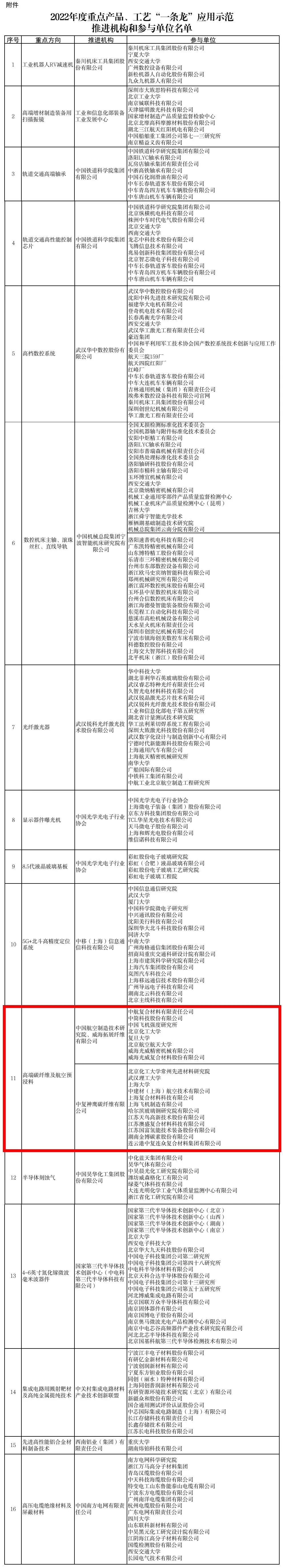 日前,工业和信息化部、国务院国资委近日印发通知,公布2022年度重点产品、工艺“一条龙”应用示范方向和推进机构名单。其中,中复神鹰碳纤维有限公司作为推进机构、重点方向为高端碳纤维及航空预浸料的项目位列其中。