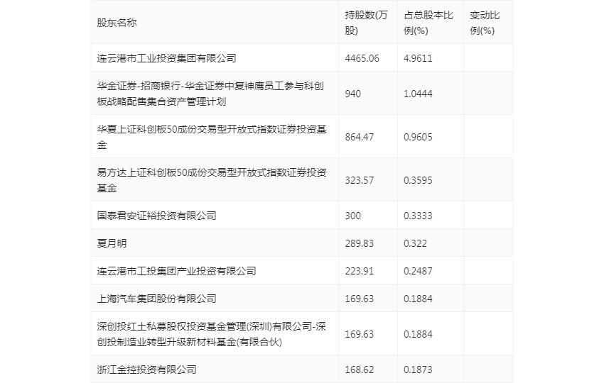 半年报显示,2024年上半年末公司十大流通股东中,新进股东为国泰君安证裕投资有限公司、上海汽车集团股份有限公司,取代了一季度末的建信优选成长混合型证券投资基金、香港中央结算有限公司。在具体持股比例上,华夏上证科创板50成份交易型开放式指数证券投资基金持股有所上升,易方达上证科创板50成份交易型开放式指数证券投资基金持股有所下降。
