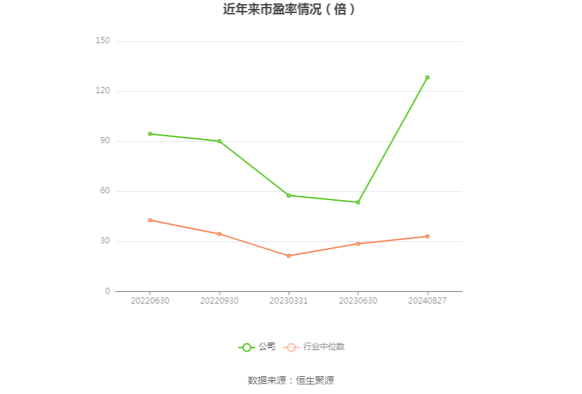以8月27日收盘价计算,中复神鹰目前市盈率(TTM)约为128.24倍,市净率(LF)约为3.27倍,市销率(TTM)约为8.08倍。