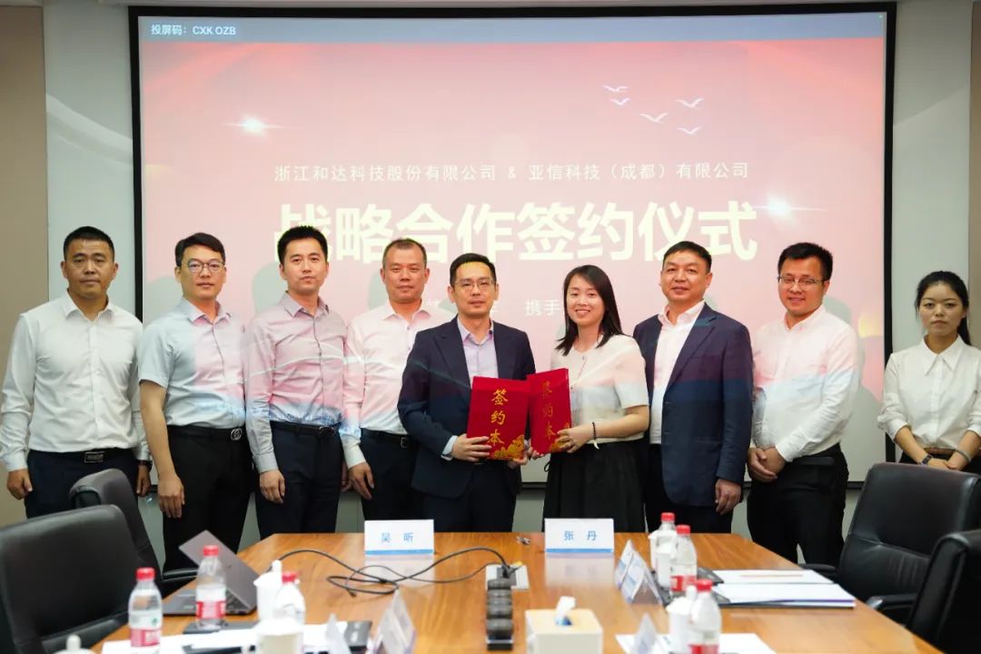 签约仪式上,和达科技信息安全部经理张丹与亚信安全浙江办事处主任吴昕一同签署了协议,和达科技副总经理、研究院院长刁黎雅,新质事业部总经理鲍建军,法务总监荆鑫,项管委采购部经理张岩及亚信安全公司高级副总裁、首席研发官(CDO)兼数字化支撑部总经理吴湘宁,亚信安全副总裁、CEO办公室总经理郭吴昊,亚信安全副总裁、联席CMO周海涛,亚信安全副总裁、渠道运营部总经理罗贤斌等领导出席并见证了战略合作协议签署的重要时刻,并就双方未来合作方向展开交流。