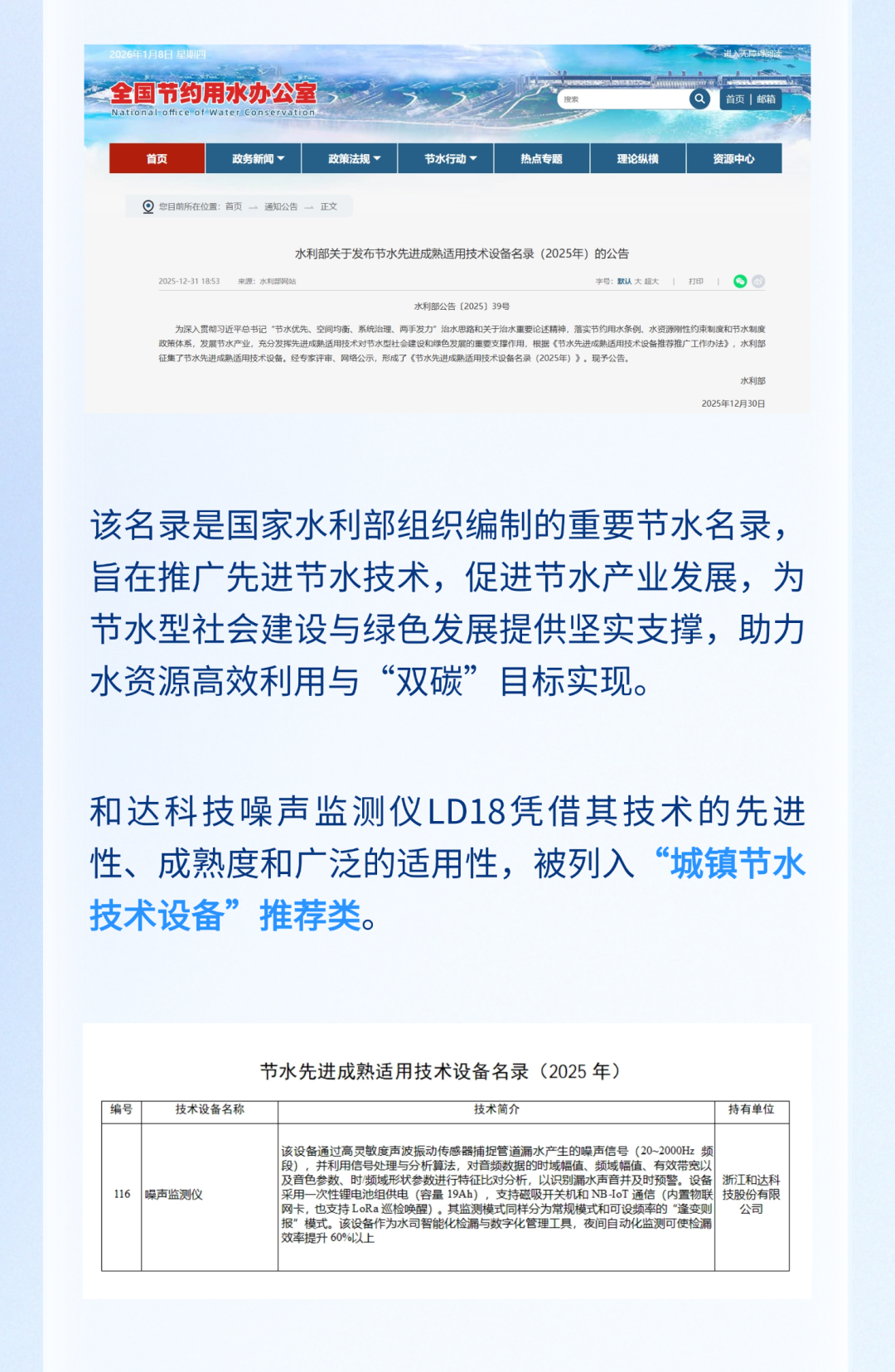 喜报!和达科技噪声监测仪入选国家水利部节水先进技术设备名录