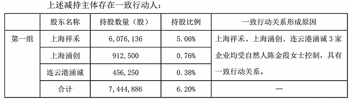 截至公告披露日,上海祥禾、上海涌创、连云港涌诚分别持有东方生物6,076,136股、912,500股、456,250股股份,占公司股份总数的5.06%、0.76%、0.38%。上海祥禾、上海涌创、连云港涌诚3家企业均受“涌金系”实际控制人陈金霞控制,具有一致行动关系,合计持有公司股份7,444,886股,占公司股份总数的6.2%。