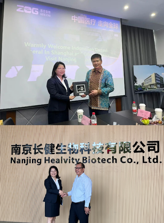 近日,印度尼西亚共和国驻上海总领事协同印度尼西亚共和国驻上海总领事馆公使衔参赞兼经济处领事、印度尼西亚曼底利银行有限责任公司上海分行总经理、南京市政府外事办公室亚洲处、上海宽呈文化发展有限公司联合创始人等一行人莅临东方基因旗下子公司南京长健生物科技有限公司参观访问。东方生物副总经理徐发英等公司领导对考察团一行表示热烈欢迎。