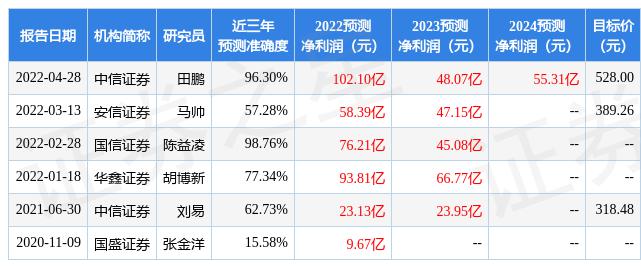 证券之星数据中心根据近三年发布的研报数据计算,国信证券陈益凌研究员团队对该股研究较为深入,近三年预测准确度均值高达 98.76%,其预测东方生物 2022 年度归属净利润为盈利 76.21 亿元,根据现价换算的预测 PE 为 1.18。