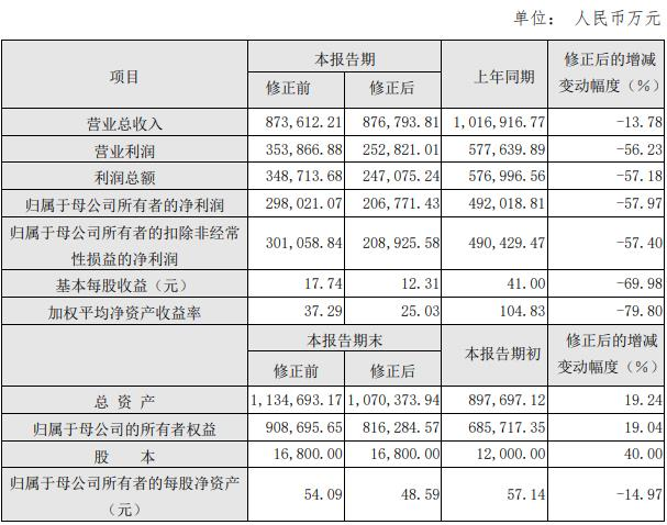 公司于4月26日披露的《2022年度业绩快报更正公告》显示,公司出于谨慎性原则,主要对与新冠检测试剂生产相关的存货及与新冠检测试剂生产相关的设备等计提大额的存货跌价或资产减值准备,合计计提12.0974亿元。以上减值主要导致利润相关指标大幅度下调,其中营业利润由修正前35.39亿元下调至修正后25.28亿元,利润总额由修正前34.87亿元下调至修正后24.71亿元,归母净利润由修正前29.80亿元下调至修正后20.68亿元,归母扣非净利润由修正前30.11亿元下调至修正后20.89亿元,主要原因是基于公司2022年度业绩快报披露至今,新冠检测试剂订单大幅度下滑,故对与新冠检测试剂生产相关的存货全部计提存货跌价减值;对与为生产新冠检测产品相关的专用设备等资产大额计提资产减值,仅保留残值。
