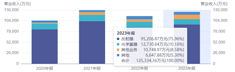2010年底,公司成立于浙江宁波,以反射膜作为切入点,寻求技术突破;2012年,公司第一代光学反射膜面世,成功打破国外巨头垄断,填补国内技术空白;2017年,公司反射膜出货量首次达到全球第一;2018年,开始向技术难度更高、市场空间更大的光学基膜领域进军;2019年11月,成功在科创板上市,先后在宁波、合肥、舟山建立了生产基地。