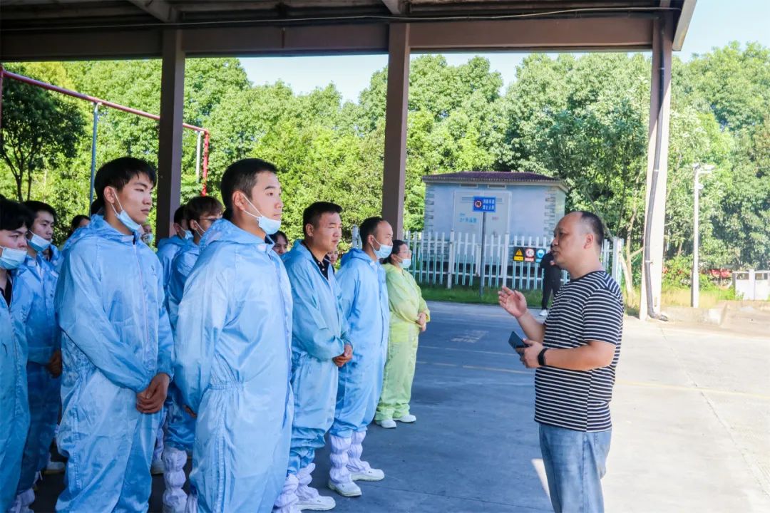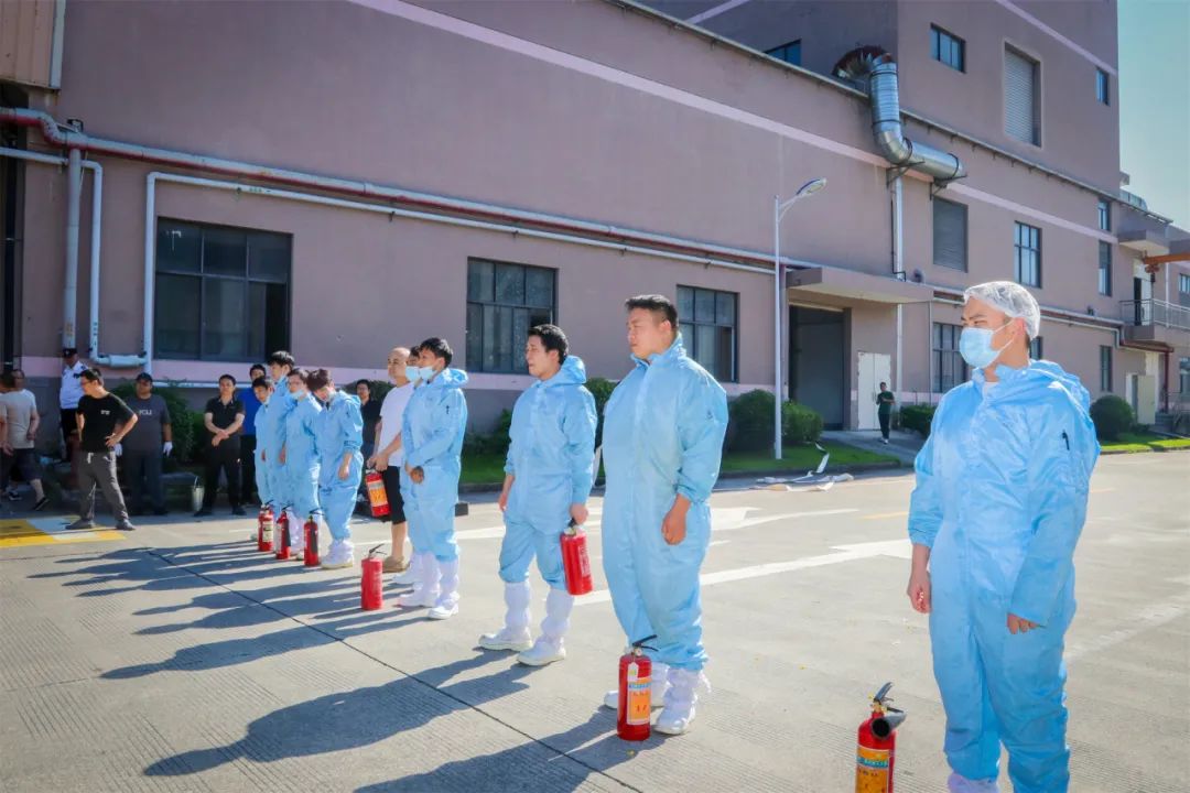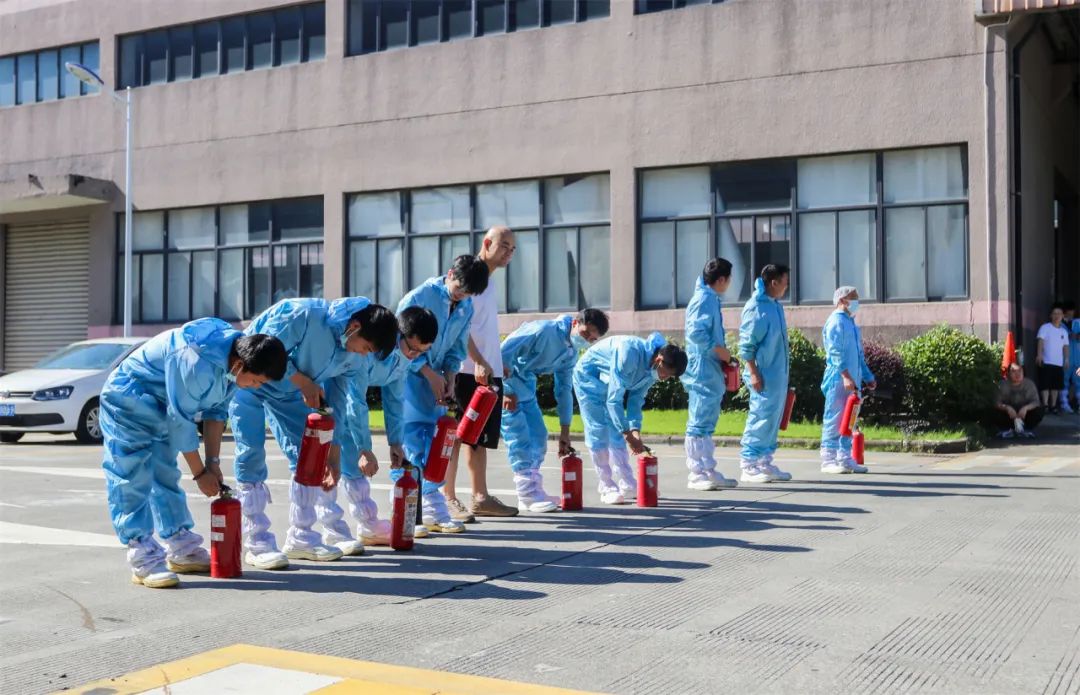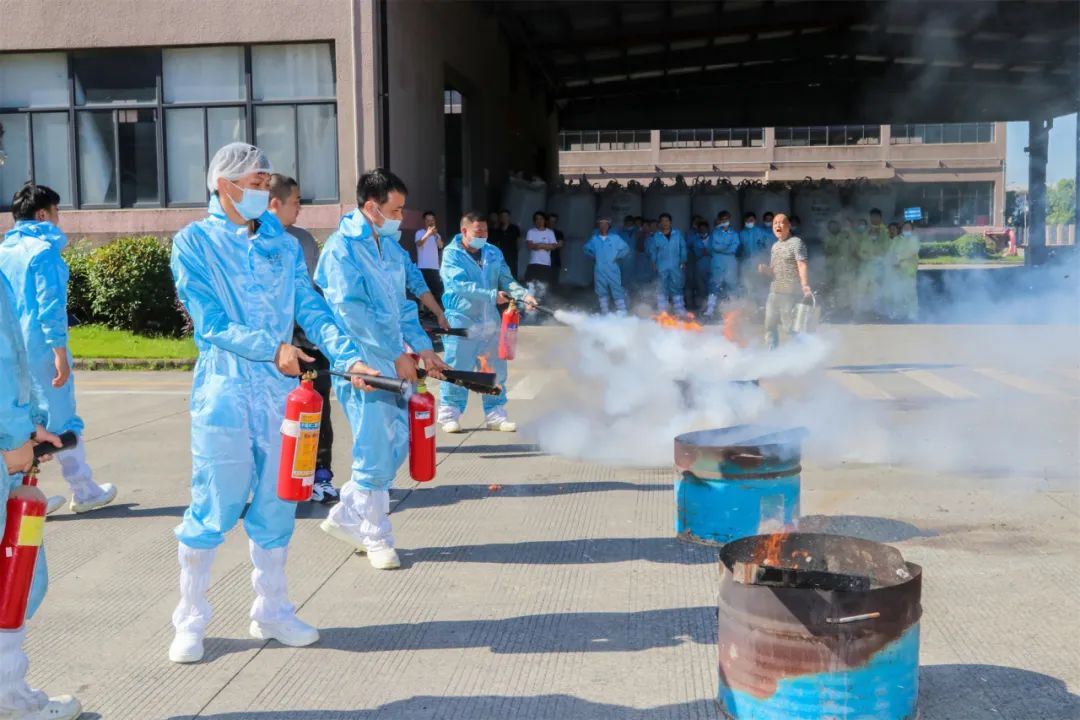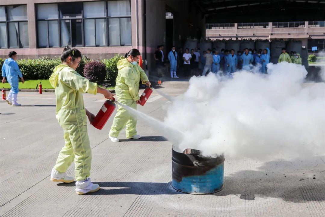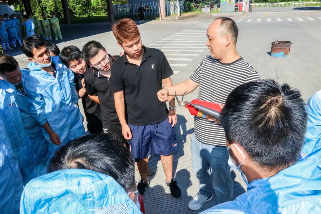 逃生演练结束后,安环厂务部的人员对演练流程进行系统性复盘,针对疏散队列间距、安全出口标识引导等细节提出优化建议。随后进入消防器材实操环节,通过"讲解+演示+实操"三位一体的培训模式,详细拆解干粉灭火器操作要点:
