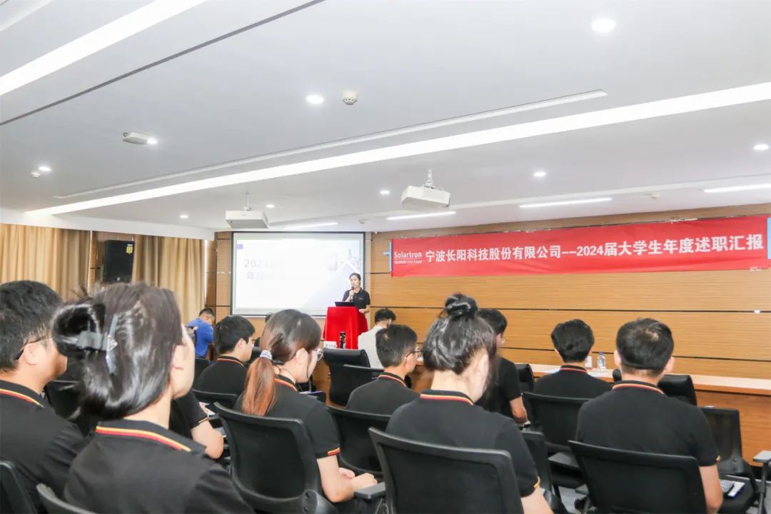 述职现场,高管团队的认真提问与暖心建议交织,既有对专业深度的严格要求,更有对职业规划的真诚指引,金总对同学们一年来的成长感到欣喜,他表示长阳有“专业+管理”的双通道培养体系,认真尽责的带教导师和实战赋能的平台,可以帮助大家快速成长,他寄语同学们,既要围绕自身的发展方向深耕专业领域,更要在成长中深刻领悟长阳文化的精神内涵,让个人发展与企业愿景同频共振。