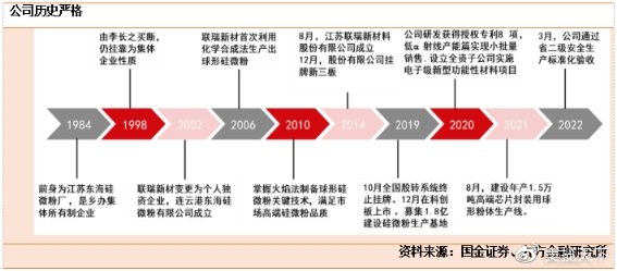 公司成立于1984年,前身为硅微粉厂,2002年公司成为李长之先生的个人独资企业,同年生益科技与硅微粉厂合资成立东海硅微粉有限公司。2014年公司完成股份制改造并挂牌新三板,2019年登陆科创板。公司深耕硅微粉行业,专注于电子级硅微粉产品的研发、生产和销售。