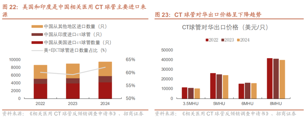 政策催化X线核心部件产业链国产替代加速。根据昆山医源医疗技术有限公司向商务部提交的《医用CT球管产业产业竞争力调查申请书》:在供应端,国内医用CT球管市场基本上被国外企业所垄断;且承受进口价格高达十几万元到上百万元的成本支出,推高我国医疗设备的采购成本,同时外资利用自身品牌和竞争优势,大量降价或低价在国内销售CT球管,对国内产业竞争生态造成冲击。2025年4月,我国商务部对美国、印度的医用CT球管进行反倾销调查,有望进一步强化X线核心部件的国产替代趋势。奕瑞科技作为国内X线核心部件龙头,具备稀缺的卡位优势,有望充分受益。