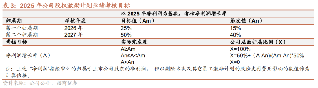 多次实施股权激励,彰显长期发展信心。上市以来,公司共实施3次股权激励。2025年,公司发布新一期股权激励,授予限制性股票数量206万股,占公告时公司总股本的1.03%,激励对象共188人,授予价格100元/股,考核目标以2025年净利润为基数,目标值情况下,2026年净利润增速不低于25%,2027年净利润增速不低于50%。公司通过多次股权激励,一方面深度绑定核心高管和技术骨干,有利于公司长期发展,另一方面彰显公司对未来发展信心。