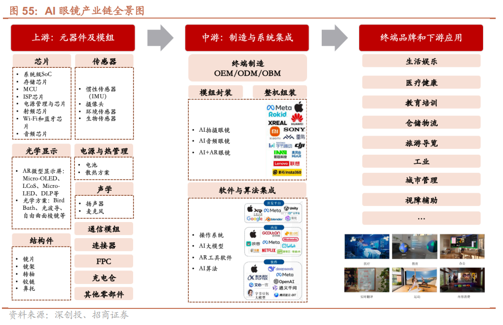 AI眼镜应用落地进程加速,产业链上下游有望共同受益。AI眼镜行业正从前期探索阶段逐步迈向规模化增长阶段,在此过程中,智能眼镜厂商、处理器供应商、ODM/EMS合作伙伴、音频、电池和结构部件供应商、3C设备等产业链上下游有望共同受益行业应用加速趋势。