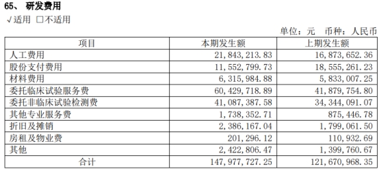 2023年上半年,海创药业研发费用为1.48亿元,同比增长21.62%;主要系研发团队建设不断加强,同期研发的多个创新药物项目在不同研发阶段研发投入不同所致。