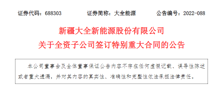 据公司情报专家《财经涂鸦》消息,11月30日晚,大全能源又连发两条签订特别重大合同的公告。