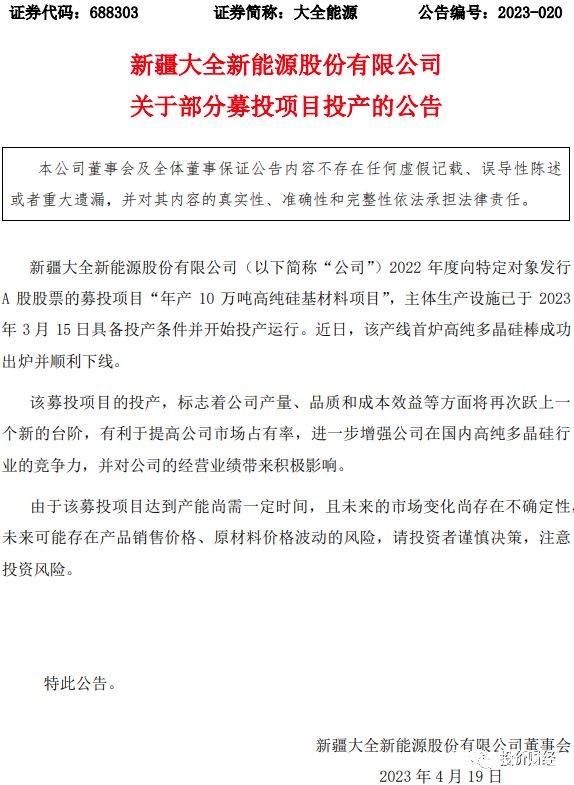 上述业绩不仅可以让大全能源稳居科创板“盈利王”宝座,更超越A股95%的上市公司,展现出大全能源良好业绩增长潜力和优秀投资价值。