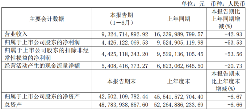 SMM 8月4日讯:8月3日晚间,大全能源发布2023年上半年业绩报告,据公告显示,公司共实现93.25亿元的营业收入,较2022年同期减少42.93%;实现归属于上市公司股东的净利润44.26亿元,同比减少53.53%。