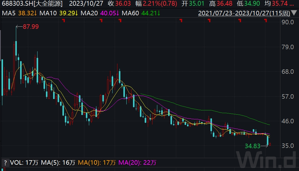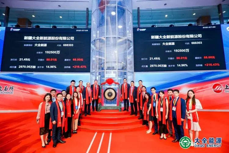 2021年7月,大全能源(DQ.N)回归A股,挂牌科创板,发行价约21.5元,赶上硅料价格一波上涨行情,其股价也一路扶摇直上,最高近88元,近三倍涨幅,实现“戴维斯双击”。