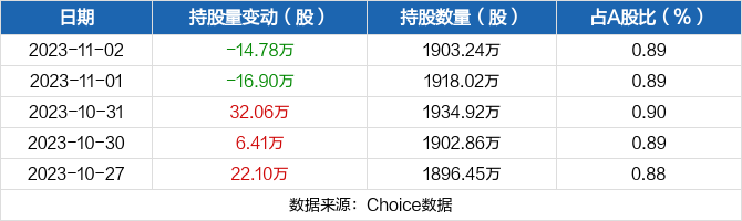 11月02日,大全能源被沪股通减持14.78万股,最新持股量为1903.24万股,占公司A股总股本的0.89%。