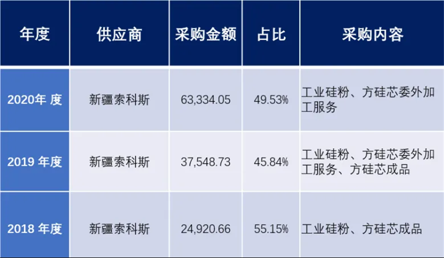 有资料显示,在大全能源上市前的几年里,新疆索科斯一直是其最大的供应商。上市之后,大全能源选择不再公开前五大供应商的具体信息。尽管如此,其年报中仍透露了关键数据:2021年及2022年,公司的第一大客户采购额分别达到34.33亿元和17.70亿元。