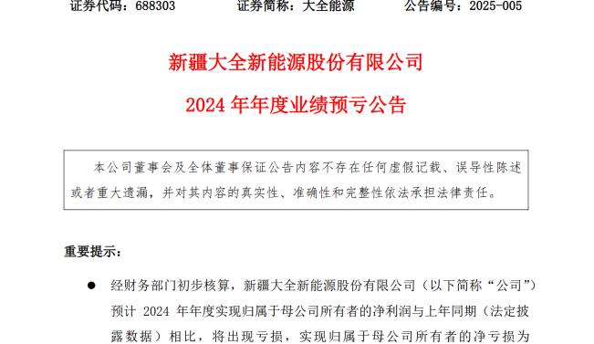 近日,大全能源工程有限公司(以下简称“大全能源”)接连披露多则重磅公告。据悉,公司预计2024年将出现大幅亏损,净亏损额在26亿元至31亿元之间。同时,公司核心技术人员王西玉离职,进一步加剧了市场对其未来发展的担忧。