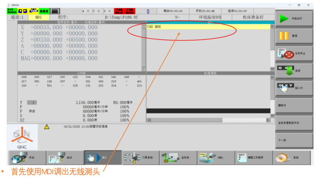 **Step 1**:MDI调用无线测头,AI自动校准工件坐标系,5分钟完成传统30分钟的手动对刀;