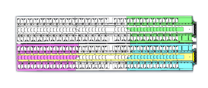 该产线用于生产激光雷达的多模块协作半自动装配线,年生产能力为100,000 件,极大地为客户提高了生产效率。该系统共有26个模块,长16米,宽8米,工艺节拍168s。