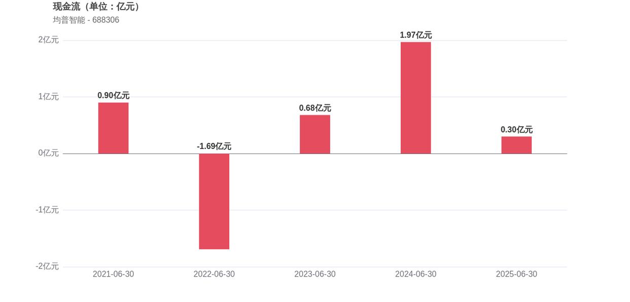 在经营稳健性方面,均普智能面临存货周转效率下降的压力,存货周转天数为380.87天,较2024年上半年增长了3.19%。经营活动产生的现金流净额为0.3亿元,相比2024年同期的1.97亿元,同比下滑了1.67%。此外,2025年上半年的资产负债率为64.40%,同比下降了1.81个百分点,这意味着公司负债总额占资产总额的比重在减少。
