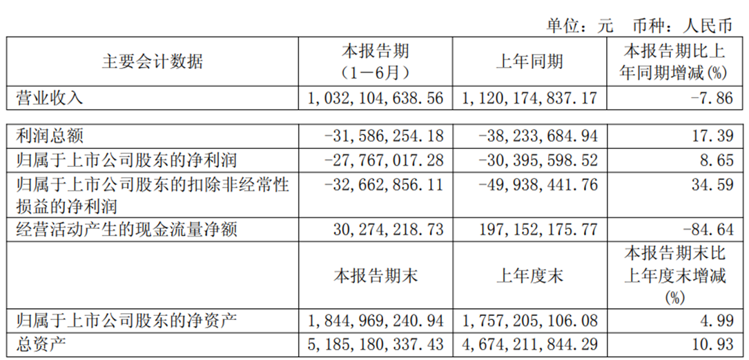 均普智能(688306)近日披露2025年半年度报告。2025年上半年,公司实现营业收入10.32亿元,同比下降7.86%;归属于上市公司股东的净利润为-2776.70万元,上年同期为-3039.56万元;归属于上市公司股东的扣非净利润为-3266.29万元,上年同期为-4993.84万元;经营活动产生的现金流量净额为3027.42万元,同比下降84.64%。