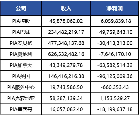 此外,在2023年,均普智能境外9家公司中,除PIA克罗地亚外,其余8家公司都是亏损。